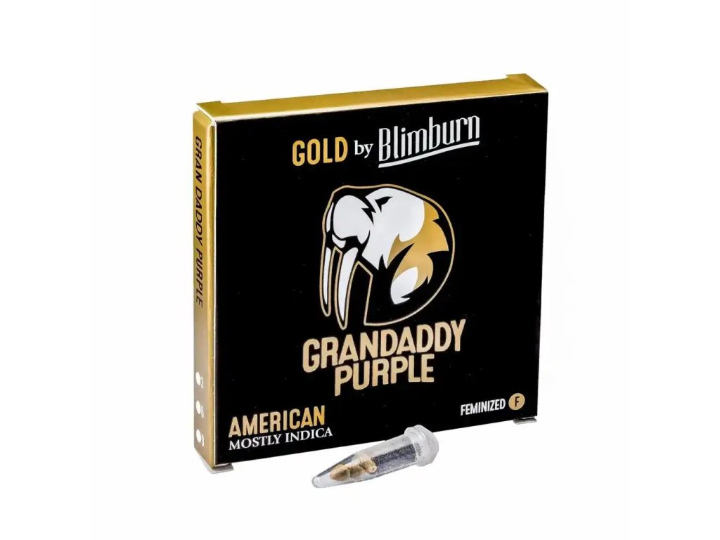 Grandaddy Purple od Blimburn Seeds je feminizovaná odrůda s výraznou dominancí Indicy (80%). S vysokým obsahem THC 25-30% a nízkým obsahem CBD (<1%) nabízí silnou relaxaci a euforii, ideální pro úlevu od stresu a večerní pohodu.