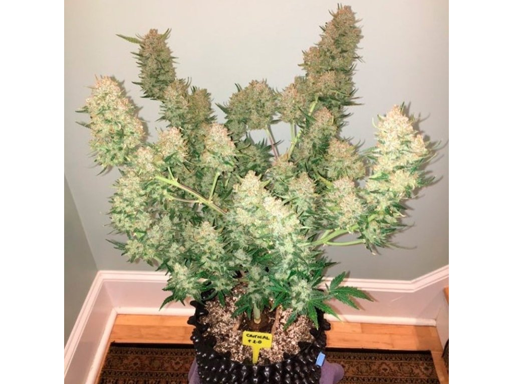 Při správné péči se Critical+ 2.0 odmění velmi vysokým výnosem až 700 g/m² v indooru a 900-1300 g na rostlinu venku. Květy mají krátkou dobu květu pouhých 45-50 dní a rostlina dorůstá do výšky 80-120 cm v indooru a 180-250 cm venku. Pěstování je středně náročné a vhodné pro indoor i outdoor prostředí. Tento kmen, vylepšená verze legendární Critical+, se vyznačuje intenzivní vůní a chutí s tóny citronu, borovice a koření.